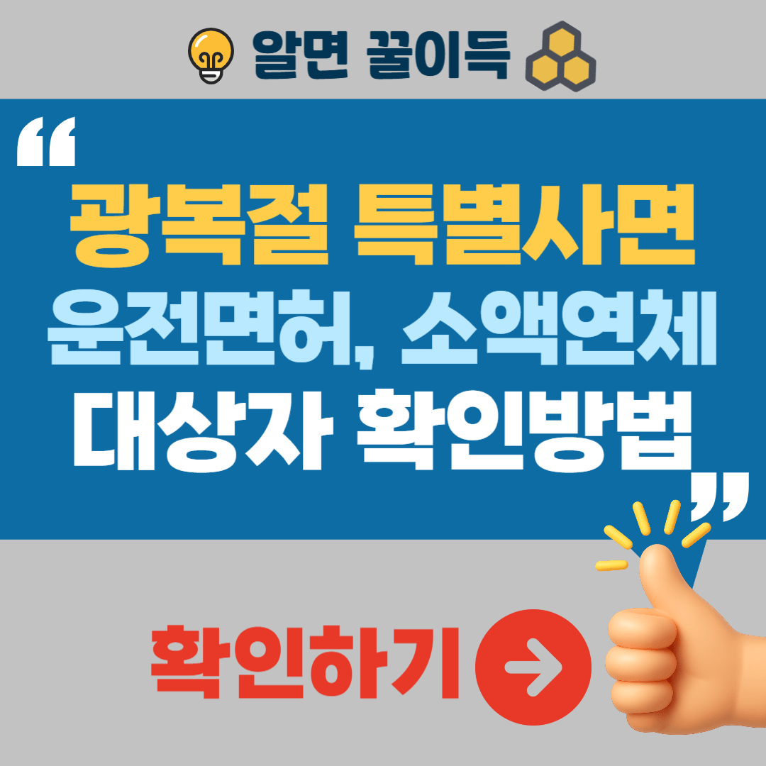 2025년 광복절 특별사면으로 운전면허 제재가 감면되고, 5,000만 원 이하 연체 채무자는 전액 상환 시 연체 이력 삭제 혜택을 받을 수 있습니다. 이 글을 통해 특별사면 대상자 확인방법, 조회방법, 결과 확인 절차 등에 대해 자세히 안내해 드리니,지금 바로 확인하셔서 혜택을 받는지 꼭 확인하세요!