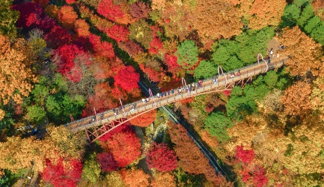 - 심화 분석:화담숲은 고도차가 있어 단풍이 지는 시기가 다릅니다. 보통 정상부(모노레일 3승강장 부근)부터 물들기 시작하여 입구 쪽으로 내려옵니다. 이 때문에 10월 중순부터 11월 하순까지 폭넓게 단풍을 즐길 수 있습니다.